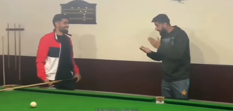 پاکستان: کرکٹ بورڈ نے بابر اعظم کو ایک بار پھر قومی ٹیم کا کپتان مقرر کیا ہے اسی دوران کاکول اکیڈمی میں کھلاڑیوں کی نئے کپتان کے ساتھ ہنسی مذاق کی ویڈیو وائرل ہوئی ہے پاکستان کرکٹ ٹیم کے کھلاڑی جو ان دنوں کاکول اکیڈمی میں پاک فوج کے زیر نگرانی فٹنس کیمپ میں شریک ہیں اور سخت ٹریننگ کے ساتھ انڈور مختلف گیمز سے بھی لطف اندوز ہوتے ہیں کیمپ کے دوران کھلاڑیوں کی اسنوکر کھیلتے ہوئے ویڈیو سوشل میڈیا پر وائرل ہوئی ہے جس میں نئے کپتان بابر اعظم اسنوکر ٹیبل پر اسٹک پکڑے شاٹ لگانے کی تیاری کر رہے ہیں جب کہ قریب کھڑے عماد وسیم ان سے مذاق کرتے دکھائی دیتے ہیں جب کہ ان کے مذاق پر بابر اعظم خوشدلی سے مسکراتے نظر آتے ہیں اسی دوران کیمرے کا رخ مڑتا ہے اور کمرے میں موجود دیگر کھلاڑی بھی نظر آتے ہیں جو عماد وسیم اور بابر اعظم کے مذاق سے محظوظ ہوتے ہیں ویڈیو میں دیکھا جا سکتا ہے کہ افتخار احمد، حارث رؤف، عبداللہ شفیق ودیگر کھلاڑی اس موقع پر خوب قہقہے لگاتے ہیں سوشل میڈیا پر وائرل ویڈیو کو صارفین کی جانب سے سراہا جا رہا ہے کہ ایک جانب یہ پیغام بھی ہے کہ قیادت کی تبدیلی سے ٹیم کے اتحاد اور یکجہتی میں کوئی فرق نہیں پڑا
