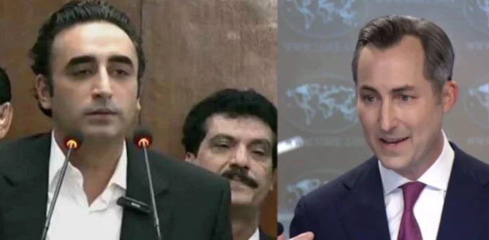 تفصیلات کے مطابق واشنگٹن میں ترجمان امریکی محکمہ خارجہ میتھیو ملر کی پریس کانفرنس کے دوران صحافی نے سوال کیا کہ بلاول بھٹو نے شہباز شریف پر سیلاب متاثرین کی رقم کھانے کا الزام عائد کیا ہے؟ کیا امریکا امداد کیلئے دی جانے والی رقم کے غلط استعمال پر نظر رکھتا ہے۔ ترجمان امریکی محکمہ خارجہ نے جواب دیتے ہوئے کہا کہ اس طرح کی اطلاعات کوہم بہت سنجیدگی سےلیتےہیں، دنیا میں جہاں بھی امریکی ٹیکس دہندگان کے ڈالراستعمال ہوتے ہیں سنجیدہ معاملہ ہے۔ انھوں نے بتایا کہ امداد کے غلط استعمال سے انسانی مفادات کو داؤ پر لگا دیا جاتاہے، یو ایس ایڈ کے ذریعے امداد کی فراہمی کی نگرانی کا ایک سخت نظام استعمال کیا جاتاہے، امداد کا غلط استعمال ہوتے دیکھ کر اس امداد کو بند کر دیتے ہیں۔ یاد رہے بلاول بھٹو زرداری نے دعویٰ کیا تھا کہ انہوں نے سیلاب زدگان کے لیے 400 ملین ڈالر کا قرضہ اور امداد حاصل کی، جسے وفاقی حکومت نے مبینہ طور پر اپنے لیے مختص کیا ہے۔ پی پی چیئرمین کا کہنا تھا کہ ورلڈ بینک سے حاصل کردہ 400 ملین ڈالر وفاقی حکومت نے اپنے پاس رکھے ہوئے ہیں، جو انہیں اس بہانے سے روپے فراہم کر رہی ہے کہ وہ منصوبوں کے لیے استعمال ہوں گے۔ انہوں نے حالیہ برسوں میں ایک بھی گھر کی تعمیر میں ناکامی پر وفاقی حکومت کو تنقید کا نشانہ بنایا اور زور دیا کہ فنڈز سیلاب زدگان کے لیے بھیجے جائیں۔
