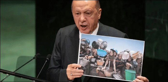 ترک صدر رجب طیب اردوان نے اقوامِ متحدہ کی جنرل اسمبلی کے اجلاس میں عالمی برادری کے ضمیر کو جھنجھوڑ دیا اور غزہ میں اسرائیلی جارحیت سے زخمی اور معذور بچوں کی تصاویر پیش کیں۔اپنے خطاب میں اردوان نے کہا کہ اسرائیل گزشتہ 23 ماہ سے غزہ میں ہر گھنٹے ایک بچے کو قتل کر رہا ہے اور فلسطینی بچے اسرائیلی بمباری کا نشانہ بن رہے ہیں۔ترک صدر نے دنیا کے ممالک پر زور دیا کہ وہ فلسطینی ریاست کو تسلیم کریں اور کہا کہ غزہ پر اسرائیلی بمباری انسانیت کے خلاف جرم ہے۔ انہوں نے خبردار کیا کہ دنیا کی طاقت ور ریاستیں اگر خاموش رہیں گی تو یہ مجرمانہ غفلت شمار ہوگی۔اردوان نے مزید کہا کہ میں ان ممالک کا شکریہ ادا کرتا ہوں جنہوں نے فلسطینی ریاست کو تسلیم کیا، اور ان ممالک سے اپیل کرتا ہوں جنہوں نے ابھی تک یہ قدم نہیں اٹھایا کہ وہ فوری طور پر ایسا کریں۔ انہوں نے یاد دلایا کہ اقوام متحدہ کا بنیادی مقصد، جیسا کہ اس کے چارٹر میں درج ہے، دنیا میں امن و سلامتی کا قیام ہے۔