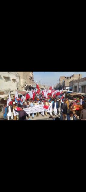 ضلع بھر میں قبائلی تنازعات کے خاتمے اور ایس ایچ او سکندر علی پہنور کے جواں سالہ بیٹے اور معصوم پوتے کی شہادت کے بعد قاتلوں کی تا حال عدم گرفتاری کے خلاف سندھ یونائیٹڈ پارٹی (ایس یو پی) کے ضلعی رہنماؤں کی جانب سے ٹاور چوک سے پریس کلب تک احتجاجی ریلی نکالی گئی