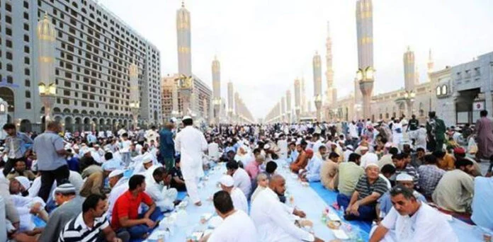 سعودی عرب میں مسجد الحرام مکہ مکرمہ اور مسجد نبوی مدینہ منورہ میں لاکھوں زائرین اور نمازیوں نے سورج غروب ہوتے ہی رمضان المبارک کے پہلے روزے کا افطار کیا۔ اس موقع پر فرزندانِ اسلام کی بہت بڑی تعداد حرمین شریفین میں موجود تھی۔سعودی خبر رساں ادارے کی رپورٹ کے مطابق حرمین شریفین میں افطار دسترخوان سجانے کی روایت صدیوں پرانی ہے، جو رمضان المبارک کی روحانیت اور اسلامی اخوت کی خوبصورت عکاسی کرتی ہے۔رپورٹس کے مطابق حرمین کے صحنوں، راہداریوں، چھتوں اور توسیعی حصوں تک افطار کے دسترخوان بچھائے گئے، جہاں مختلف ممالک سے آئے زائرین نے یکساں طور پر افطار کیا۔افطار کے فوری بعد حرمین میں تعینات کارکنان نے ریکارڈ وقت میں دسترخوان سمیٹ کر صفائی کا عمل مکمل کیا، تاکہ نمازِ مغرب اور بعد کی عبادات میں کسی قسم کی رکاوٹ نہ ہو۔