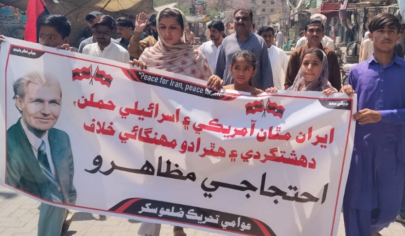 سکر: تیل کی قیمتوں میں اضافے اور ایران پر امریکی-اسرائیلی حملے کے خلاف احتجاجی ریلی اور دھرنا