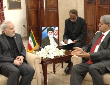 مارچ 5, 2026March 5, 2026 سپریم لیڈر ایران کی شہادت پر سید نوید قمر کی ایرانی سفارت خانے میں حاضری، پاکستان کی یکجہتی کا اظہار